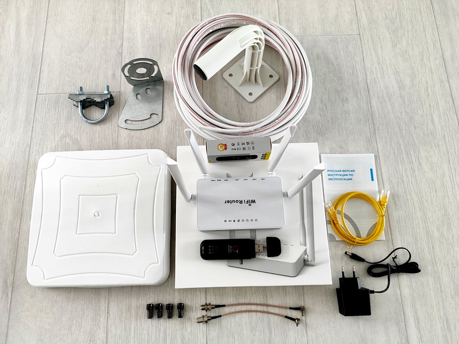 Комплект оборудования для самостоятельной установки интернета на даче, в частном доме, офисе, автосервисе и тд. Есть все, что нужно.