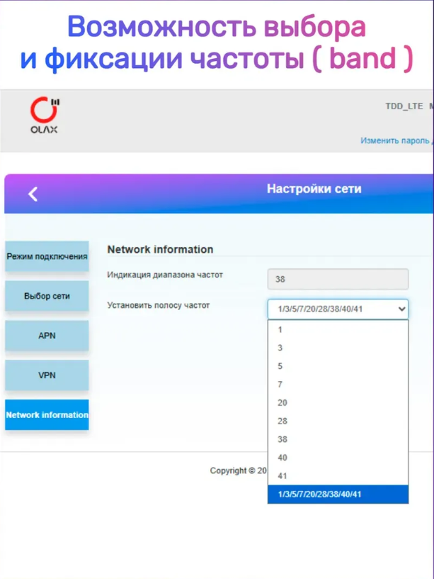 - выбор частот (бэндов) для тонкой настройки уличной МИМО антенны