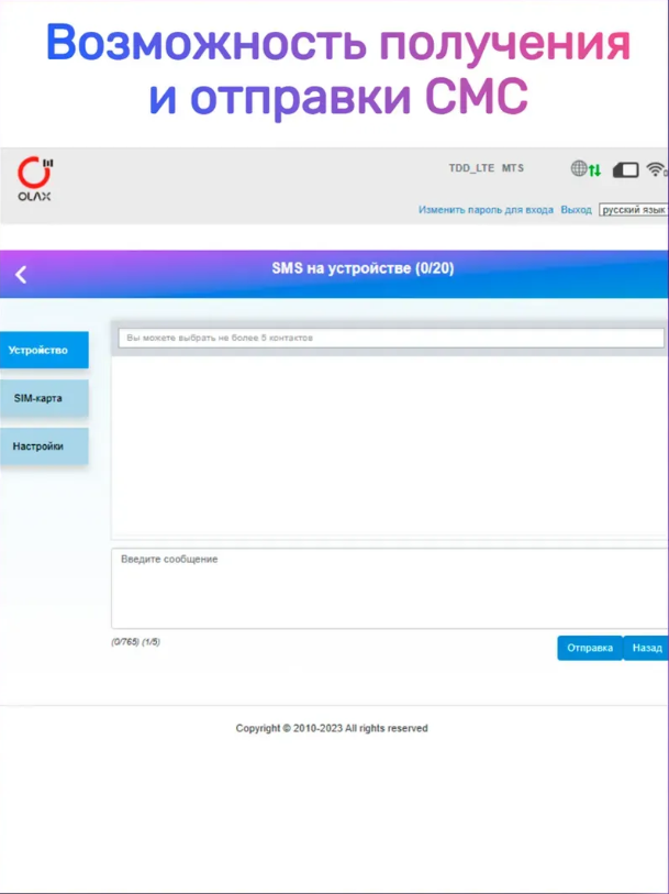 Работает в мобильных GSM сетях: 3G, 4G LTE и 5G.