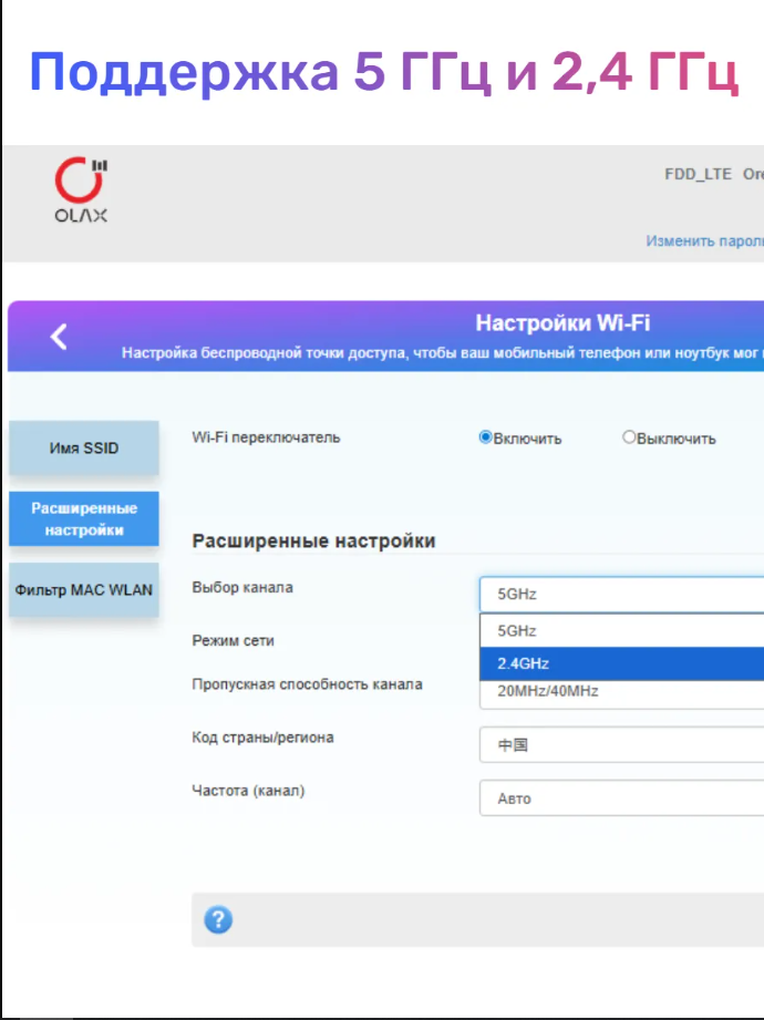 Максимальная скорость 4G модема OLAX F95 с функцией Wi-Fi роутера 300 Мбит/с.
