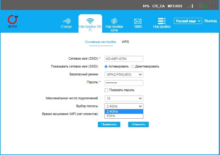 - WIFI 2.4 – 5.8 Ггц (переключается в настройках роутера)
