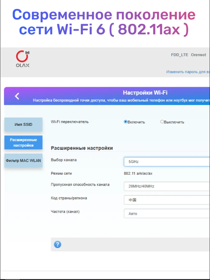 - два диапазона WIFI на выбор – 2.4 / 5Ггц с поддержкой WIFI 6!