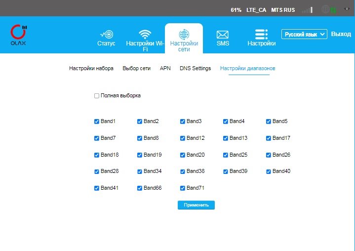 - Выбор частот (бэндов)