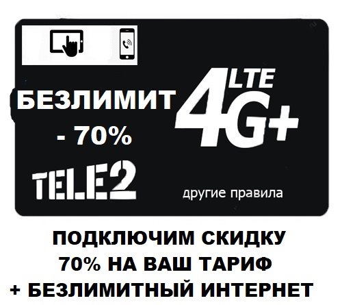 Делаем БЕЗЛИМИТНЫЙ интернет и СКИДКУ 70% на Теле2. На все номера.